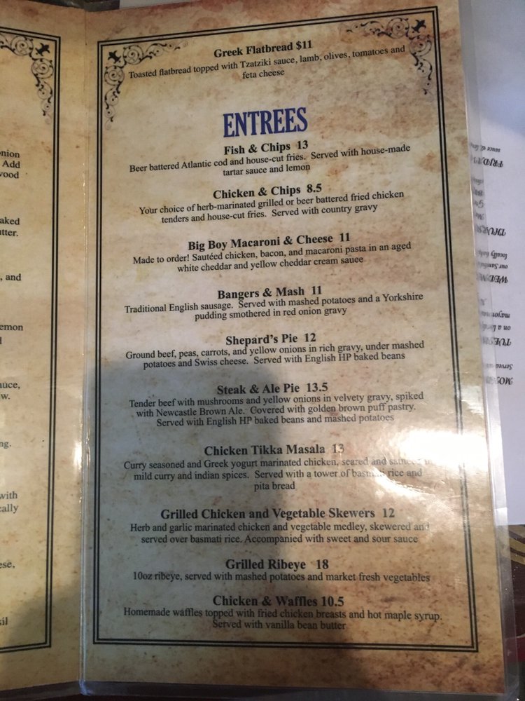 Tender beef with mushrooms and yellow onion in gravy spiked with ale. Covered with puff pastry and baked until golden brown and flaky. Served with mashed potatoes.